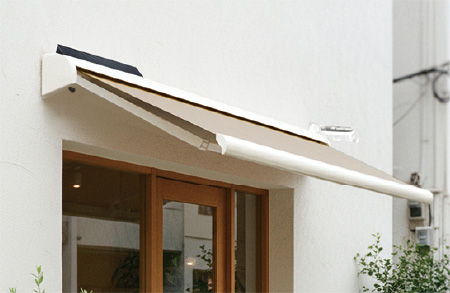 太陽光で充電しながら駆動するため、電源工事や配線の引き込みが不要。電源確保が難しい場所でも設置でき、施工にかかる手間やコストを大幅に削減できます。日中の太陽光でバッテリーを充電し、その電力でオーニングを開閉する仕組みのため、外部電源に依存せず運用が可能です。